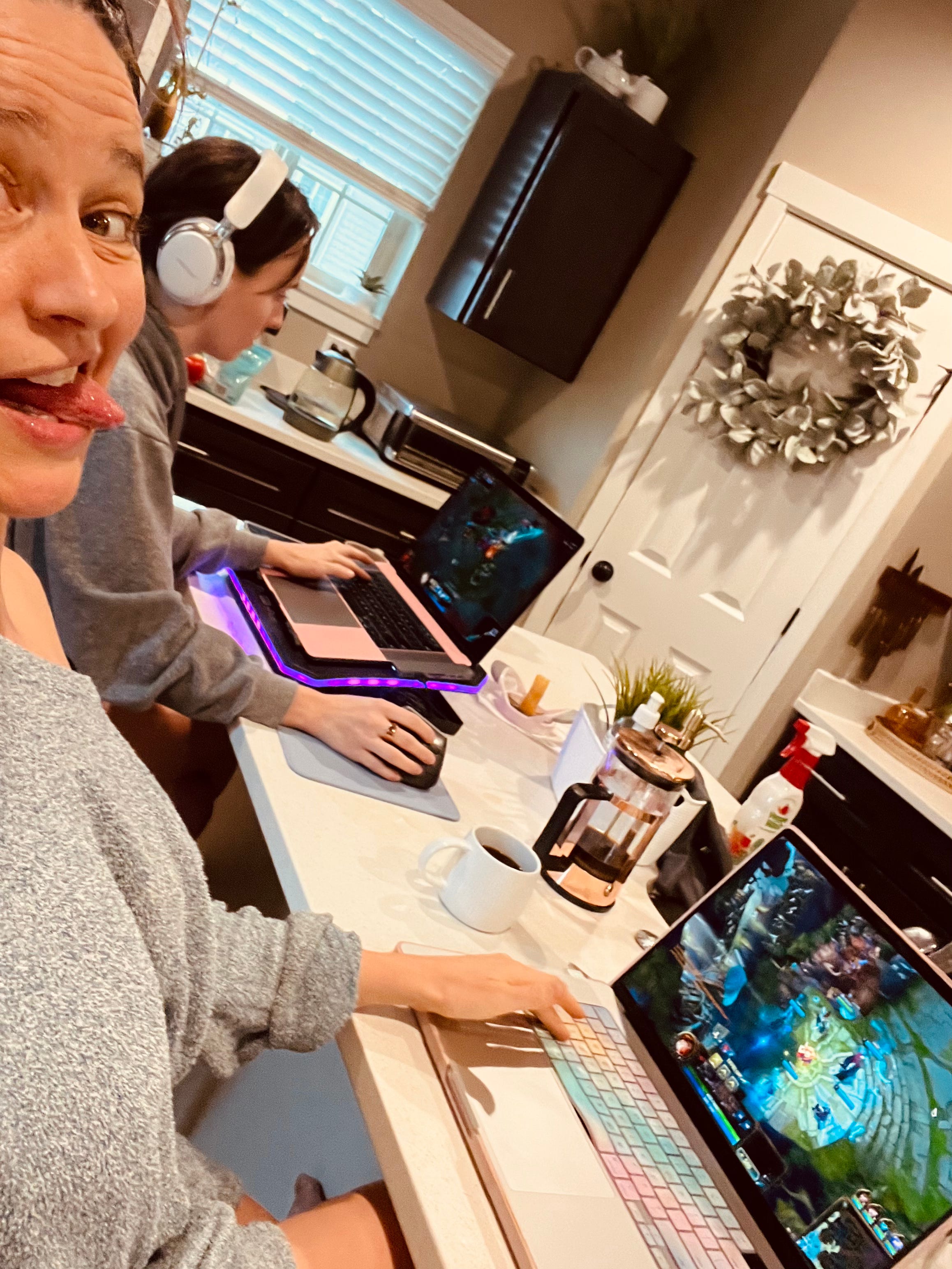 — me with my best friend playing video games on a wednesday morning instead of going to work…getting in the mood to create video game music lol …literally playing LOL though (league of legends)…i’m playing Miss Fortune ;)